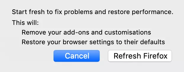 This feature accesses the data stored in the Firefox profile folder on your computer and wipes certain information, such as add-ons, website permissions, security certificates, and custom user styles. Passwords, cookies, dictionaries, and other important details like that are left intact. This action breathes a new life into the browser, often resolving issues with speed and sluggishness.